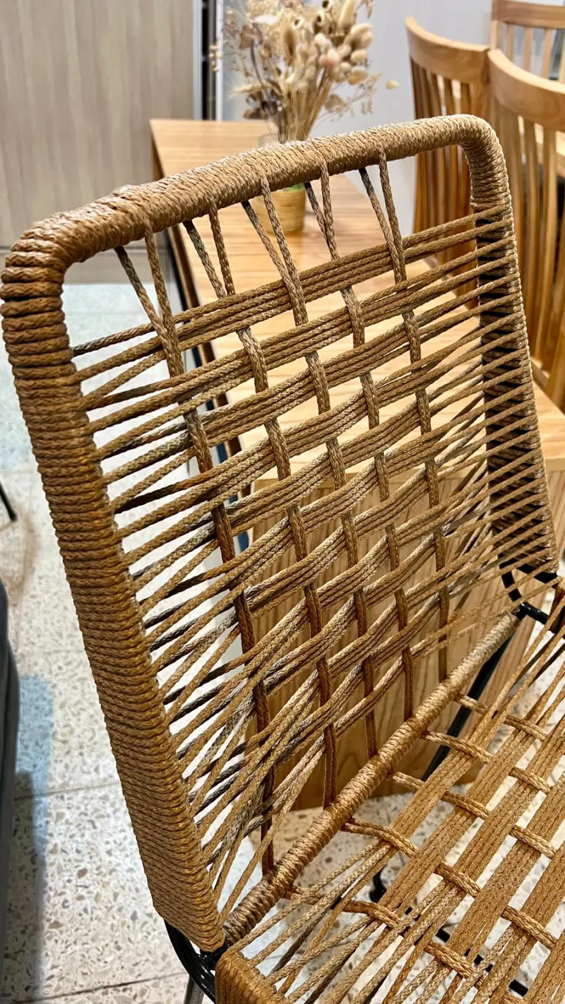 Banqueta de hierro y yute. Diseño artesanal con doble entramado que suma textura y estilo.