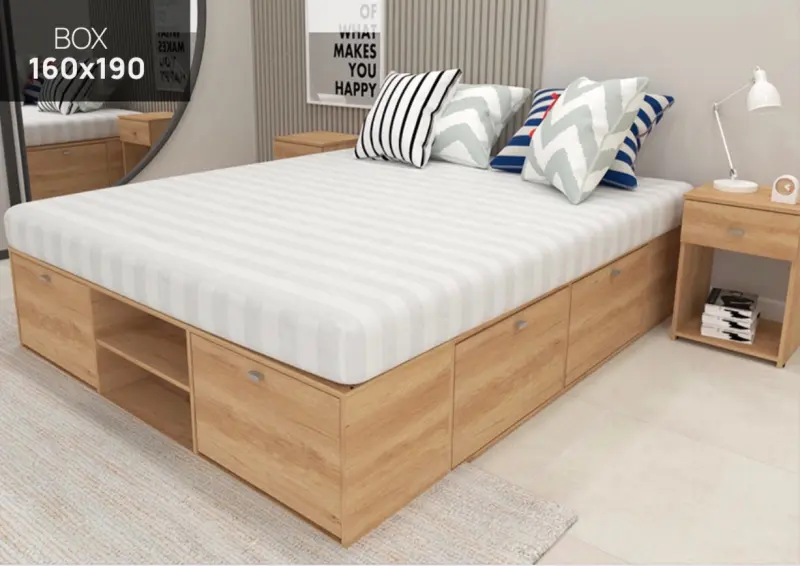 Descubrí nuestro nuevo BOX BENETHON 160 de dos plazas para colchón 160 x 200, diseñada para maximizar tu espacio sin sacrificar estilo. Cuenta con dos bauleras en la cabecera, una central y cuatro cajones con correderas metálicas. Además posee dos prácticos zapateros y dos estantes en la piecera. Ideal para mantener tu habitación organizada y moderna, esta plataforma es la solución perfecta para tu descanso.