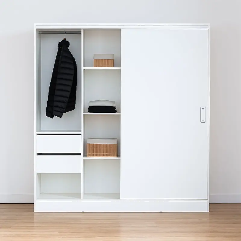 Diseñado para dos, pensado para espacios reducidos. El PLACARD GAMA es la opción ideal para quienes necesitan máxima capacidad de guardado en un formato compacto, sin resignar diseño ni calidad. Su distribución equilibrada, con cajoneras, box de guardado y amplio sector de colgado, lo convierten en un mueble versátil y funcional para cualquier ambiente.