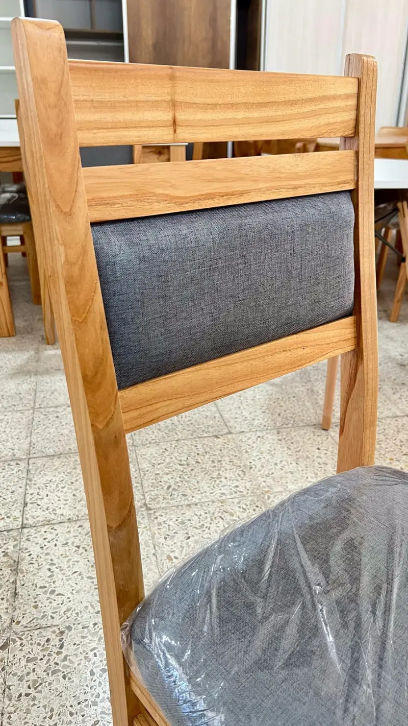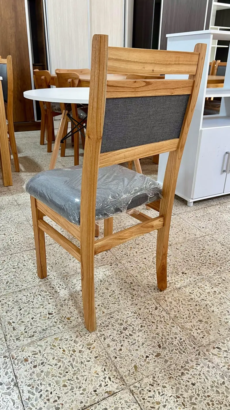 Silla modelos ESPERANZA🪑 fabricada en madera paraíso PREMIUM laqueado y tapizada en tela anti desgarro lavable✅. Respaldo 100% ergonómico y estructura con escopladuras (no tarugada), silla de primera calidad.