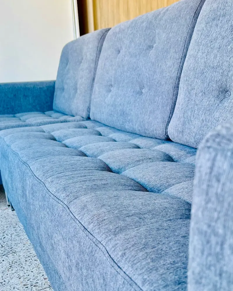 - Material: Tela resistente con detalles capitoné y estructura robusta