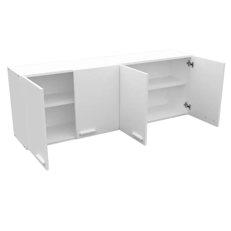 La alacena 140 es un módulo para fijar a pared que permite aprovechar al máximo el espacio vertical. Ideal para cocina, lavadero o cualquier ambiente donde se necesite almacenamiento adicional. Fabricada en melamina sobre MDP de 15 mm, con interior y fondo blanco. Manijas plásticas color gris que pueden colocarse en posición horizontal o vertical.