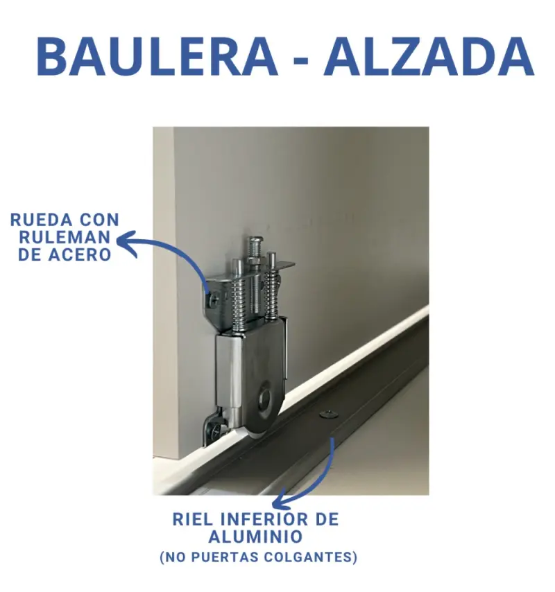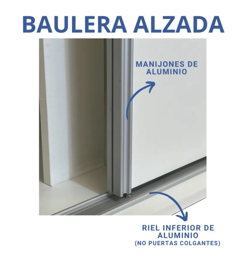 Módulo adicional para aumentar la capacidad de tu placard. Esta baulera cuenta con perfilería total de aluminio, es decir riel superior (techo) e inferior (piso) NO PUERTAS COLGANTES y manijones de aluminio no como todas las otras opciones del mercado con puerta colgante y sin riel inferior.