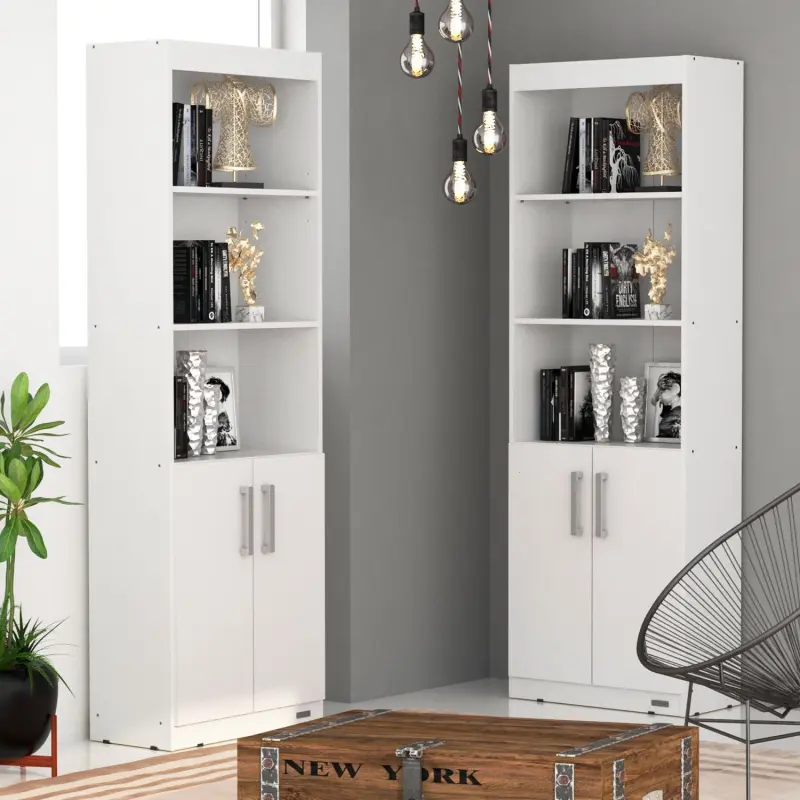 Biblioteca con 4 estantes y 2 puertas en color blanco