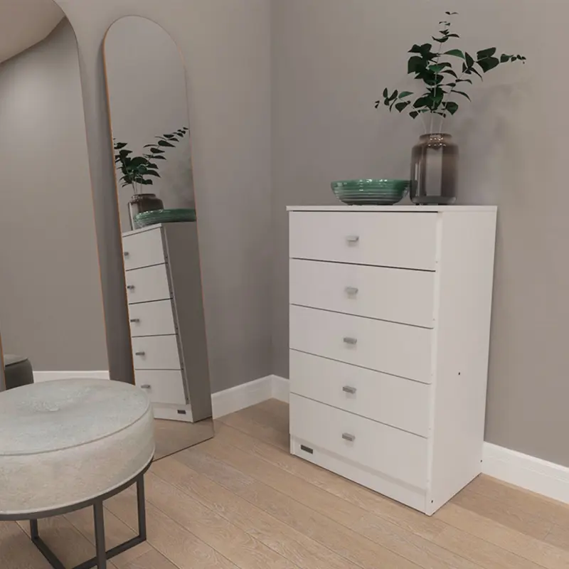CHIFONIER 5 CAJONES BLANCO - Organización práctica y estilo para tu dormitorio