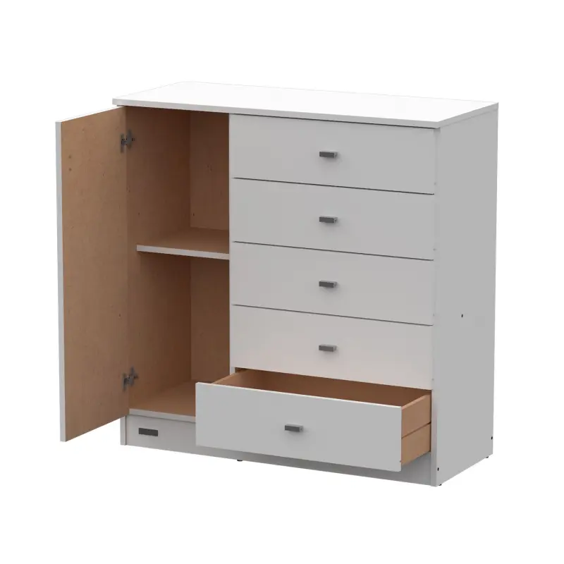 Comoda 5 cajones y puerta BLANCA