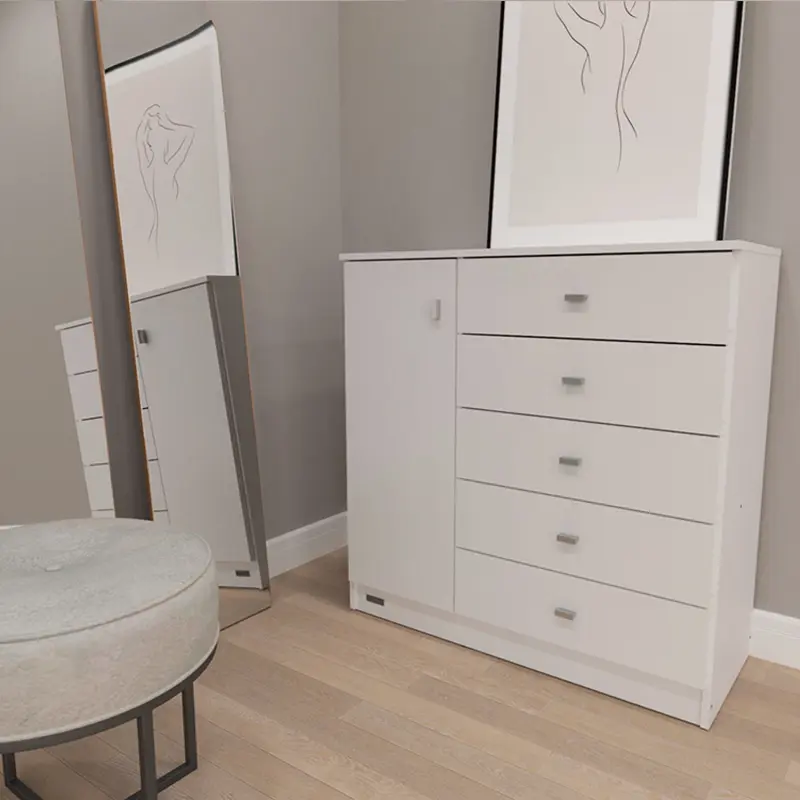 CÓMODA 5 CAJONES Y PUERTA BLANCA