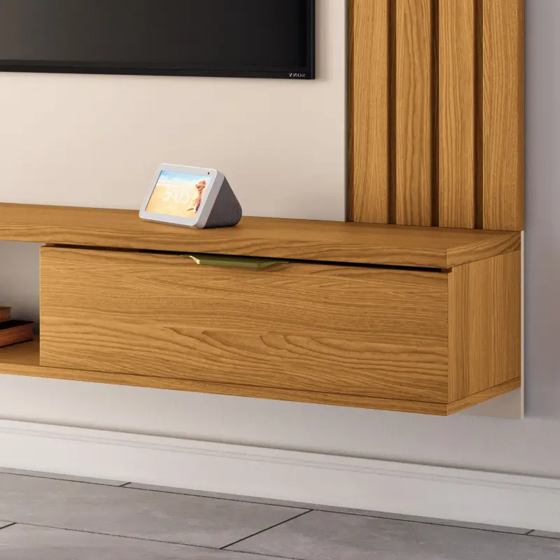 Repisa superior de 25 mm de grosor, perfecta para ubicar objetos decorativos o dispositivos electrónicos.
