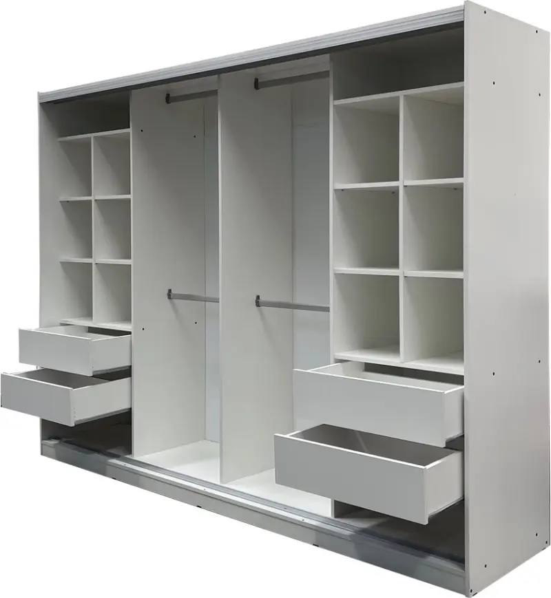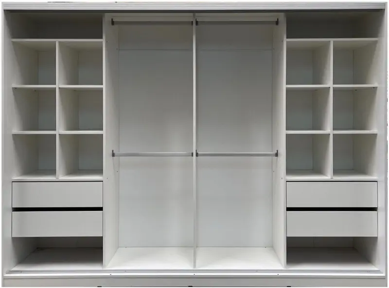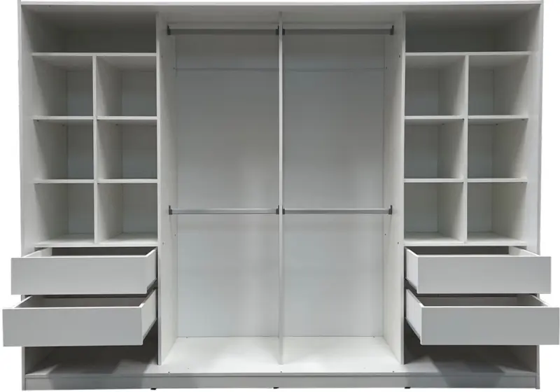 Placard vestidor línea "Delta" sin puertas 240x180x55 cm, con doble cajonera, 12 box de guardado y doble sector de colgado