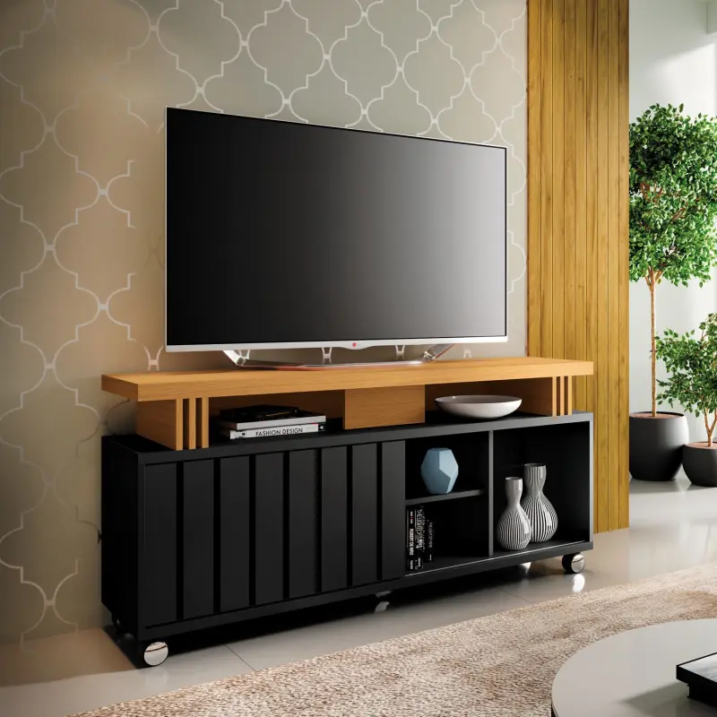 Porque combina una estructura firme, movilidad y diseño actual. Ideal para espacios medianos o reducidos, este mueble se adapta tanto a livings como dormitorios juveniles o espacios multifunción.