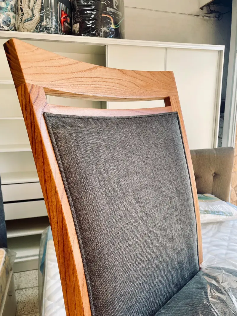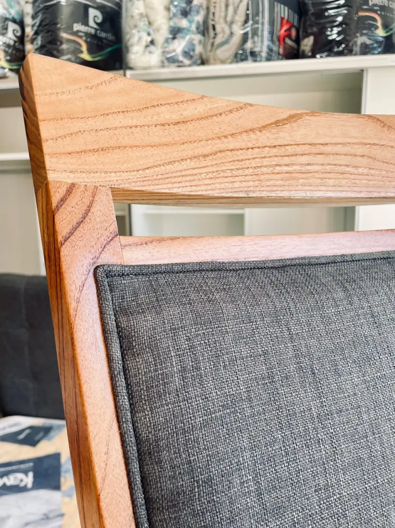 Silla modelos PARIS🪑 fabricada en madera paraíso PREMIUM laqueado y tapizada en tela anti desgarro lavable✅. Respaldo 100% ergonómico y estructura con escopladuras (no tarugada) y angulo de refuerzo, silla de primera calidad.