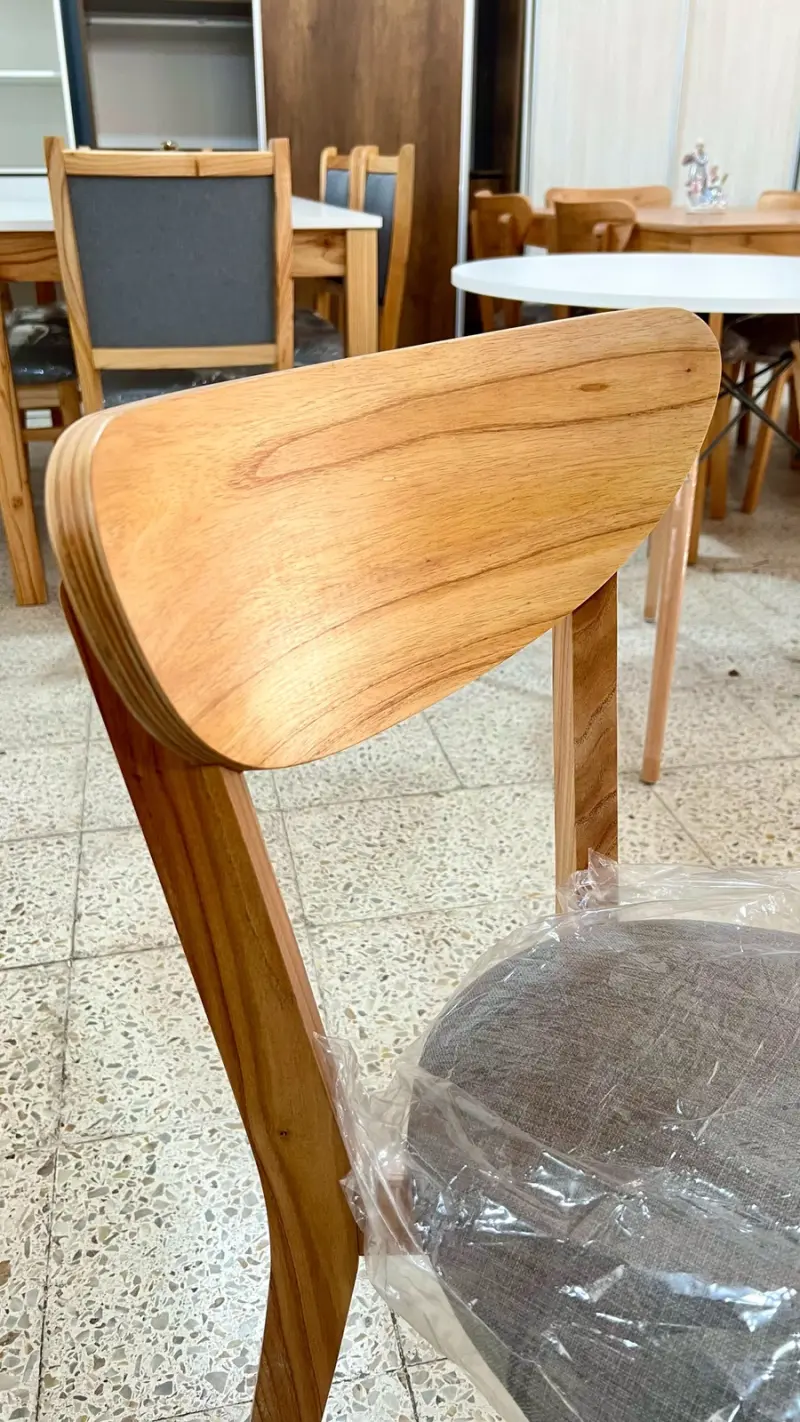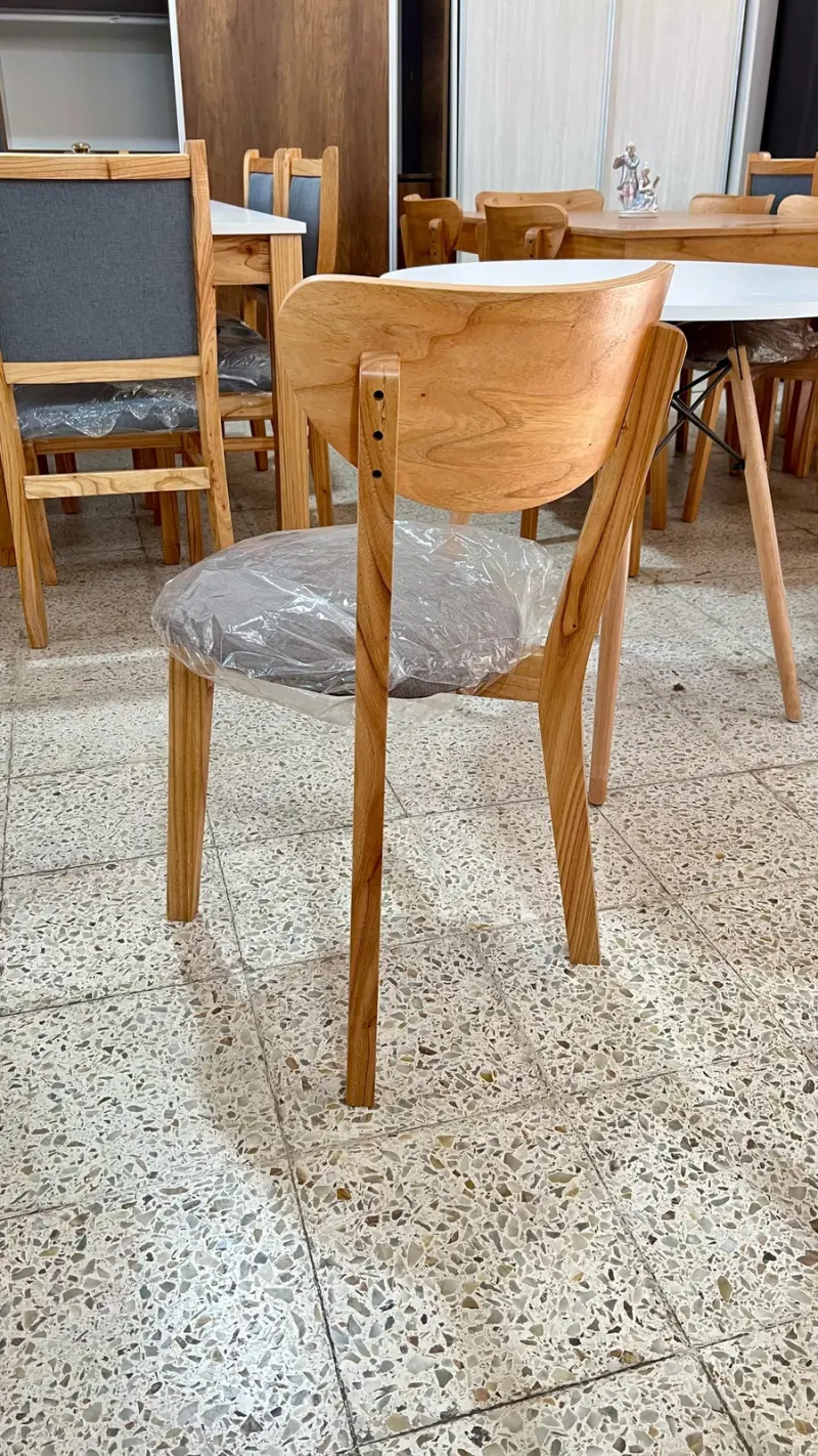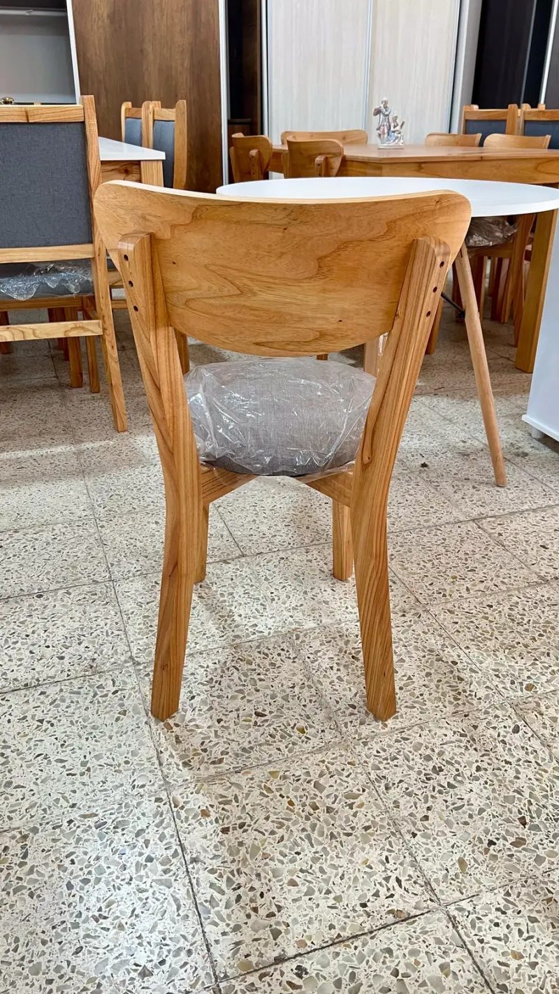 Silla modelos SKY🪑 fabricada en madera paraíso PREMIUM laqueado y tapizada en tela anti desgarro lavable✅. Respaldo 100% ergonómico y estructura con escopladuras (no tarugada) y angulo de refuerzo, silla de primera calidad.