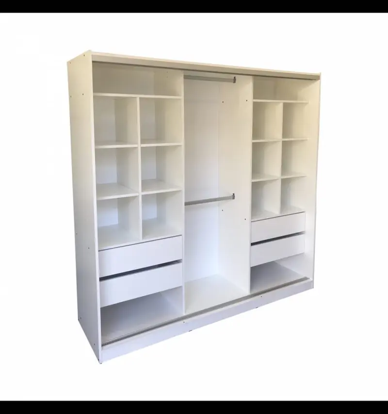 Vestidor línea Delta de 1.80m sin puertas con cajoneras y sistema de colgado organizado
